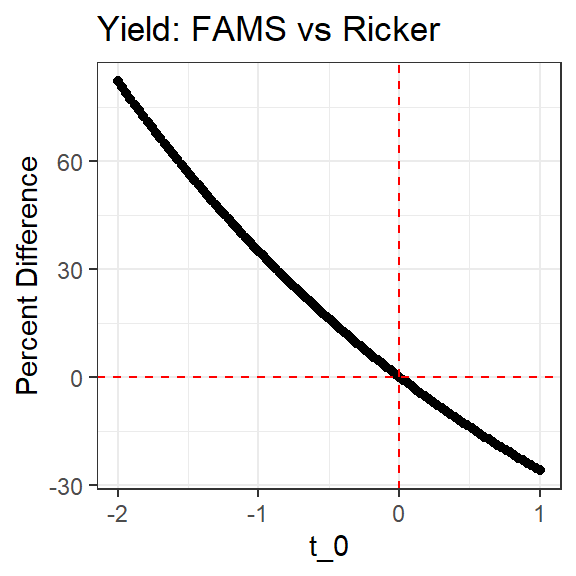 labs(x="t_0",y="Percent Difference",title="Yield: FAMS vs Ricker") +