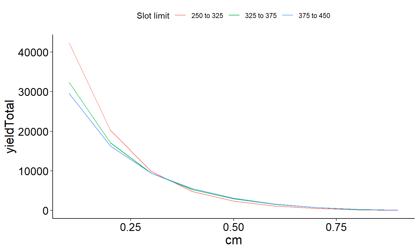 Res_2 <- yprBH_SlotLL(lowerSL=325,upperSL=375, # Set slot limit length