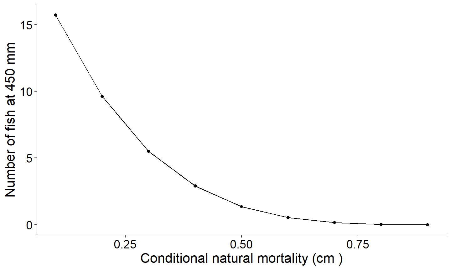labs(y="Number of fish at 450 mm",x="Conditional natural mortality (cm )") +