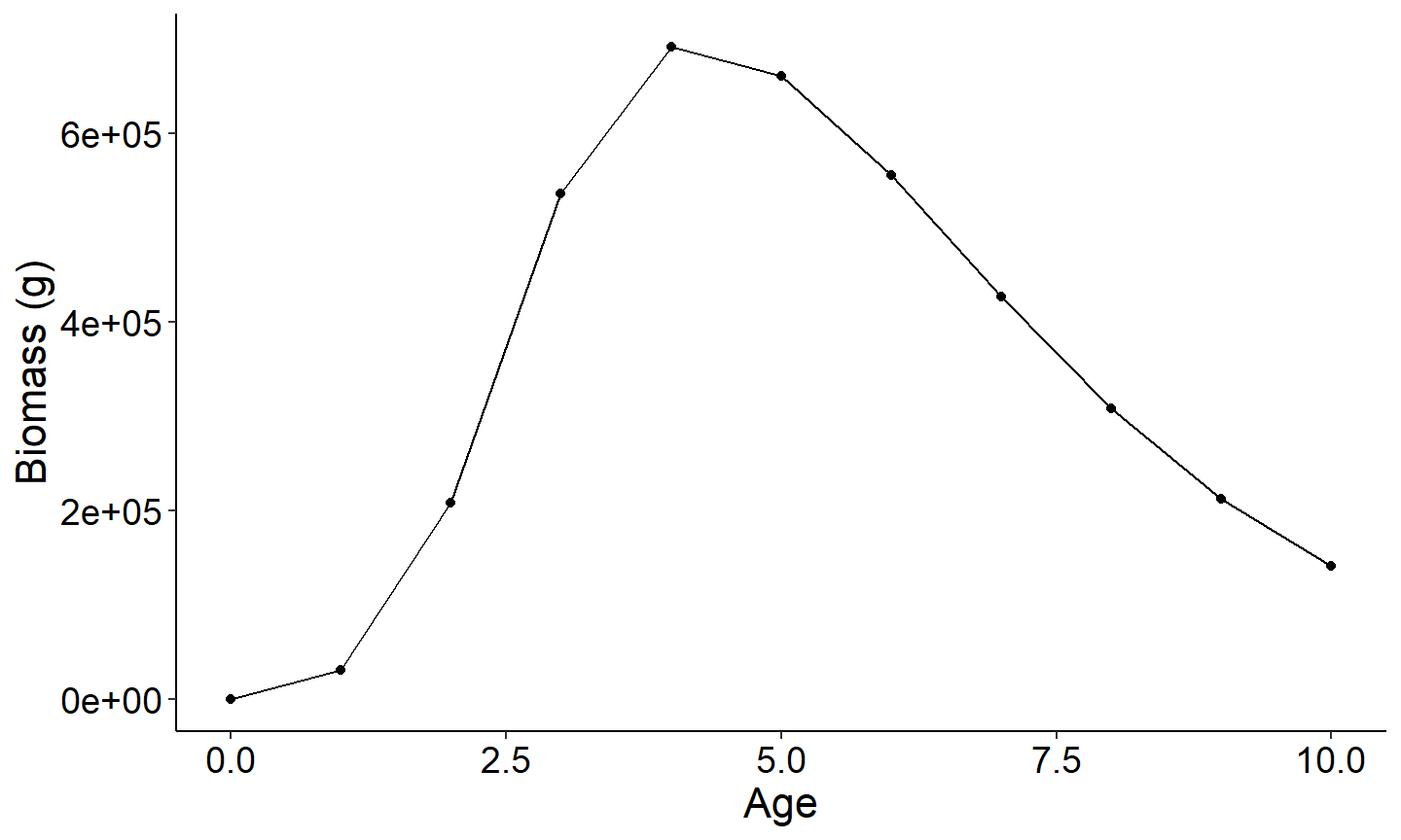 ggplot(data=plotdat,mapping=aes(x=age,y=biomass)) +