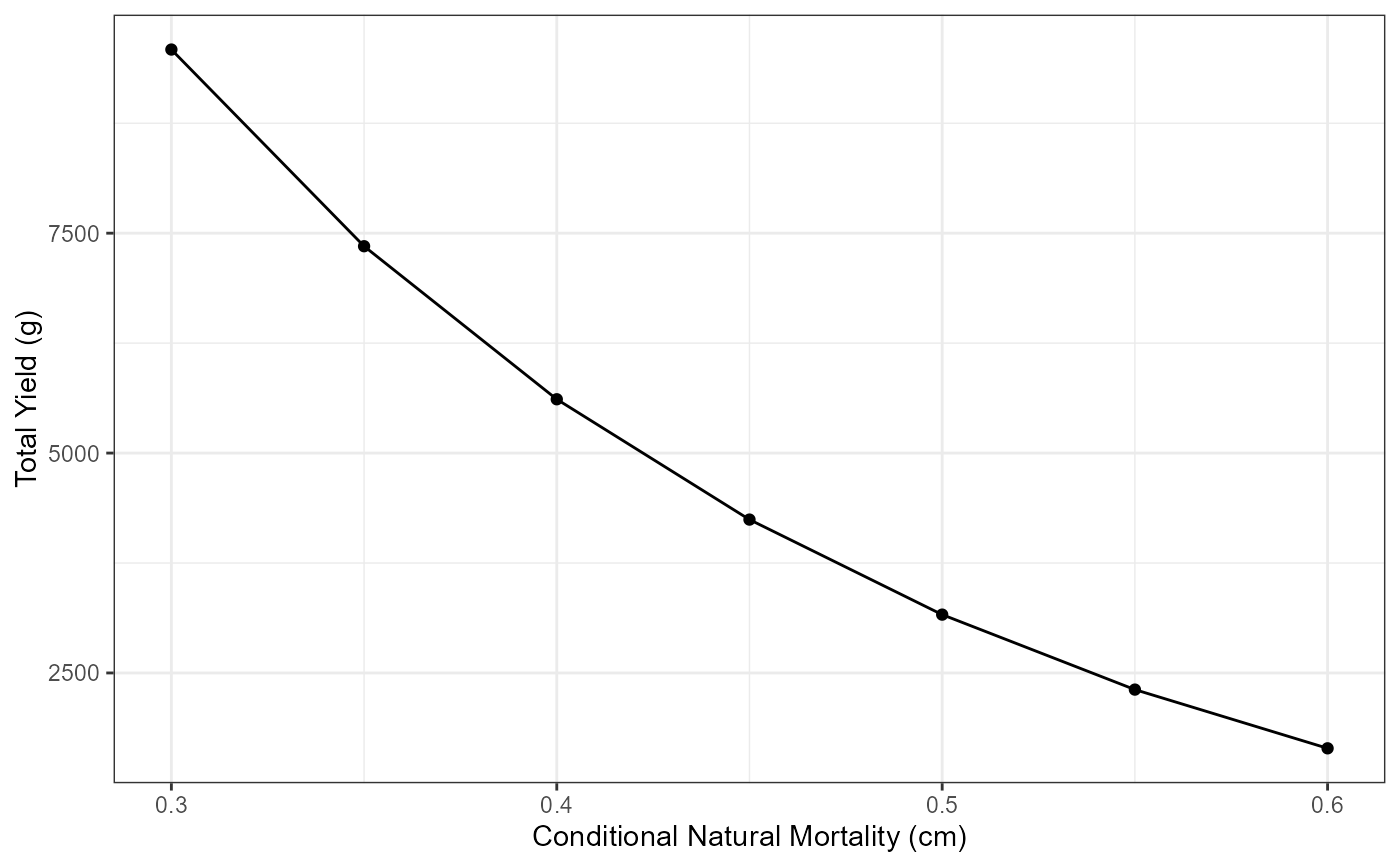 labs(y="Total Yield (g)",x="Conditional Natural Mortality (cm)") +