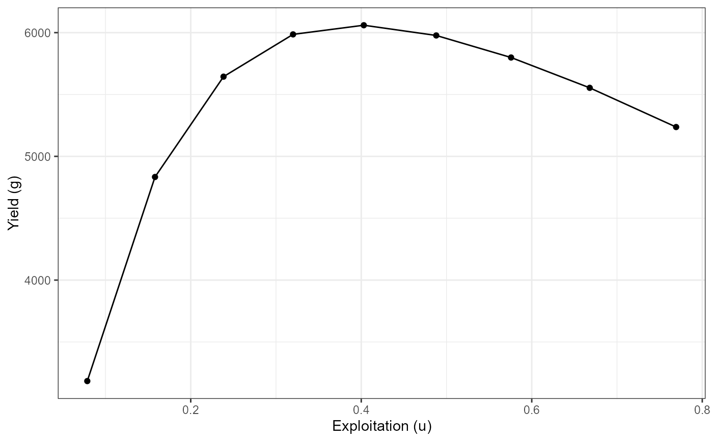 labs(y="Yield (g)",x="Exploitation (u)") +